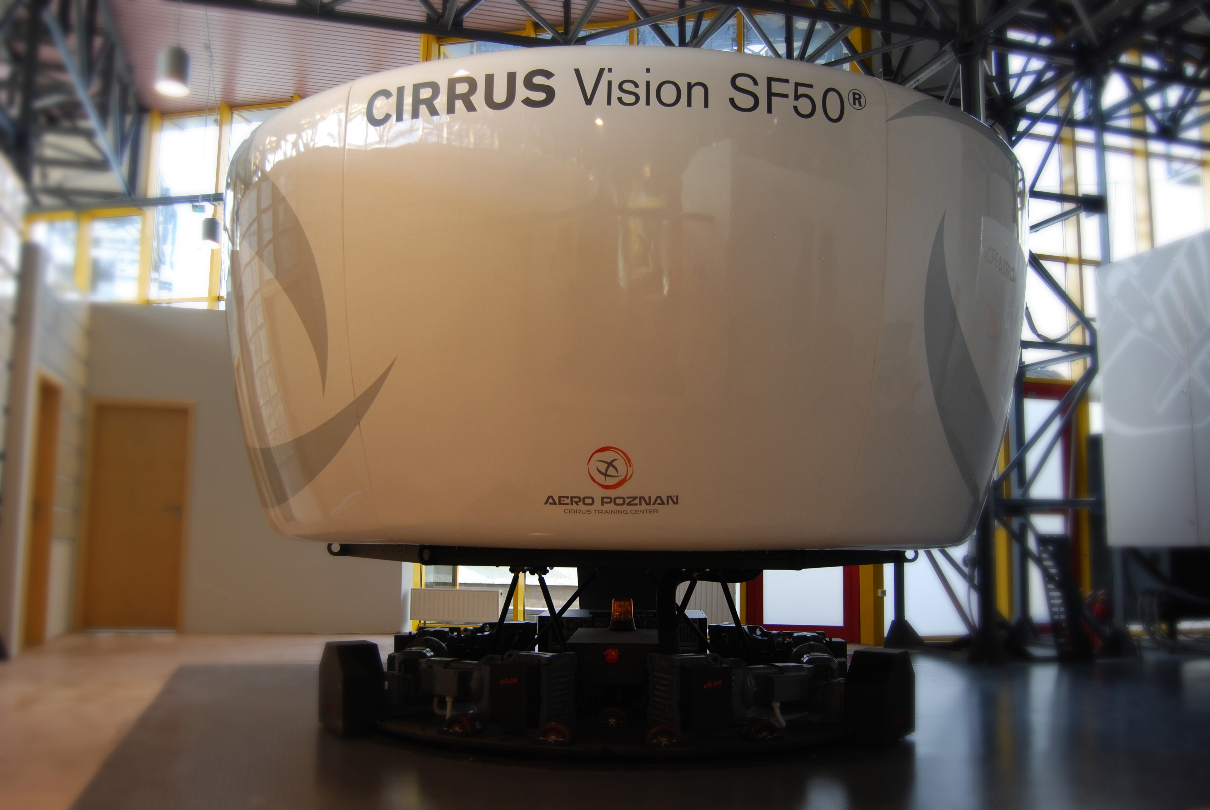In this exact copy of a Cirrus cockpit you will experience six degrees of freedom around visual screens that simulate unlimited weather and environmental scenarios creating a realistic flight experience.