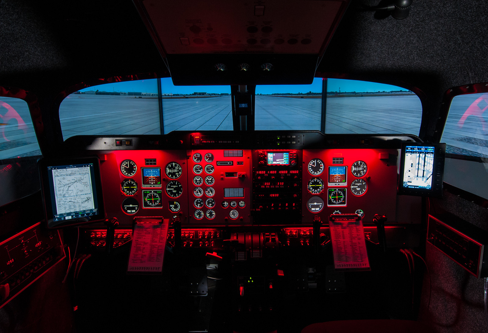 We have available Frasca Beechcraft B200 FNPTII MCC device with 3 Channel Projection Visuals.